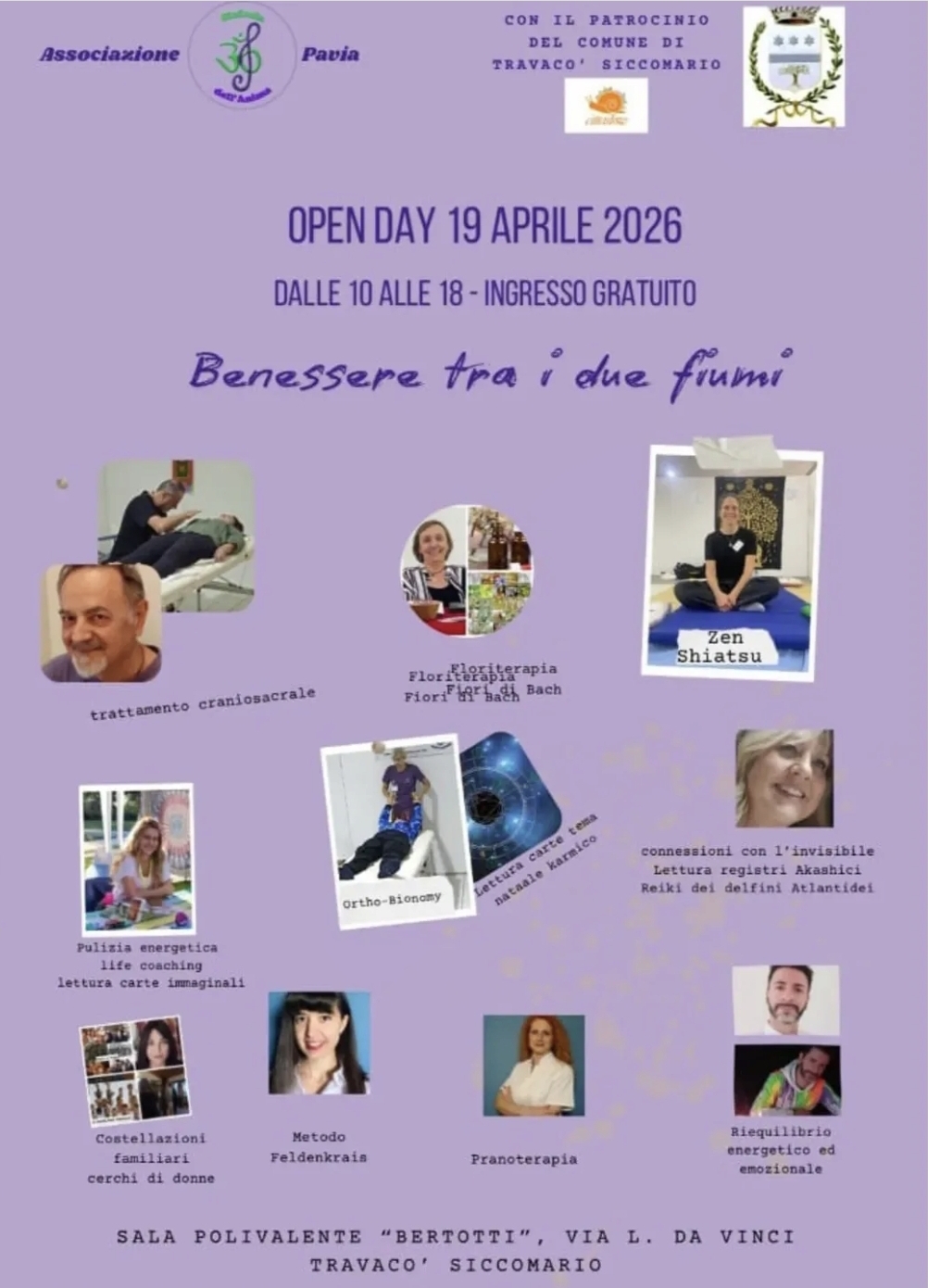 Travacò SiccomarioUna giornata intera dedicata al benessere e alla scoperta di se stessi attraverso numerose discipline olistiche con altrettanti Operatori appartenenti all'Associazione "Sinfonia dell'Anima". Le attività e i trattamenti saranno affiancati da stand enogastronomici e bancarelle di prodotti ed oggetti di artigianato. Travaco' Siccomario, in provincia di Pavia, farà da contorno a questa festa del benessere…